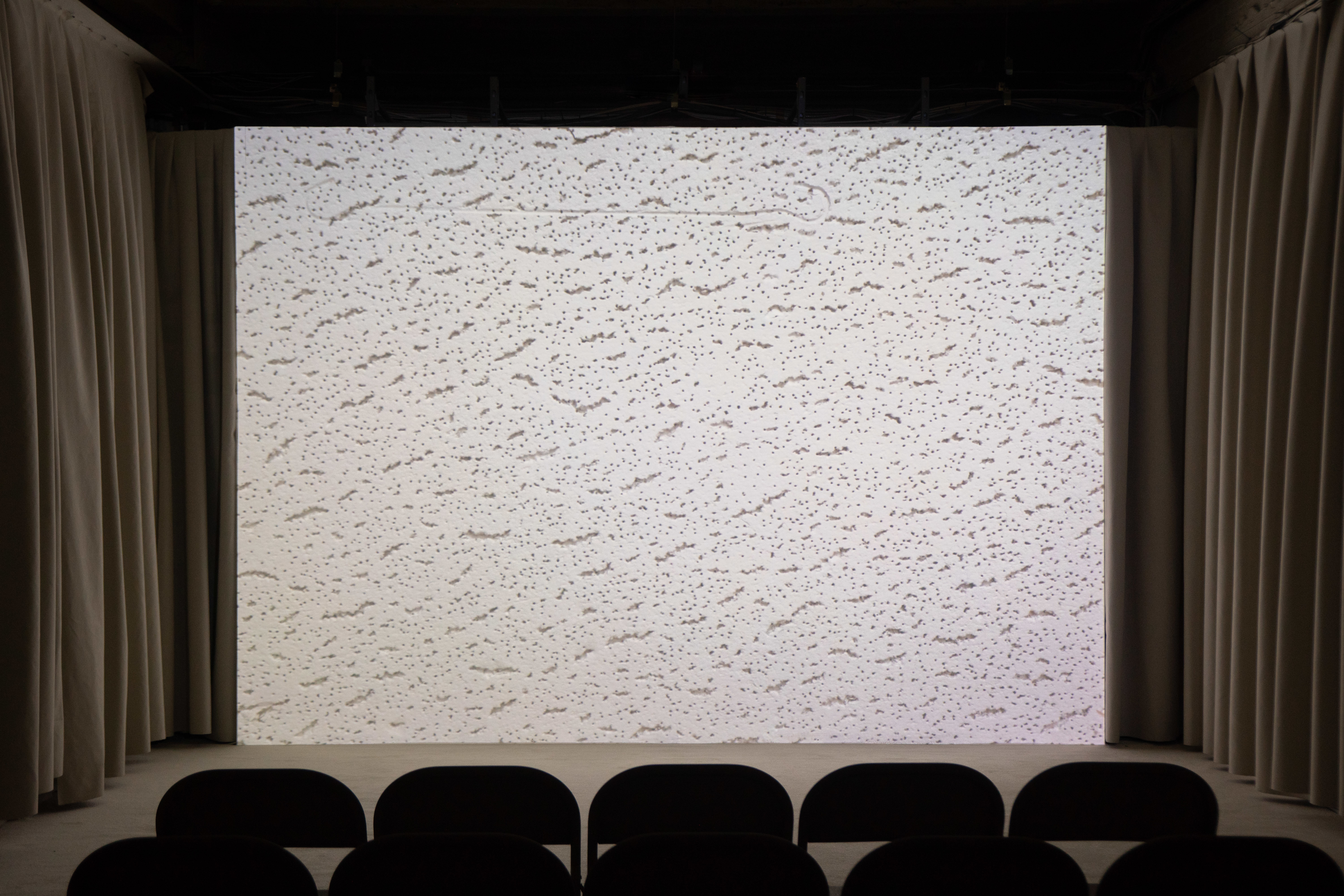 Sasha Ercole, Moritz Tibes, it’s not crocs. it’s timeless, it’s Lindy., 2022. Film and Screening room. Fabric curtains, carpet, projection screen, seating. Dimensions variable. Courtesy of the artist and Futures_after collective.